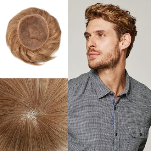 French lace men's toupee, bleached knots show a yellow color that is similar to your own scalp. Hair looks like growing from your own scalp, really undetectable hairline.