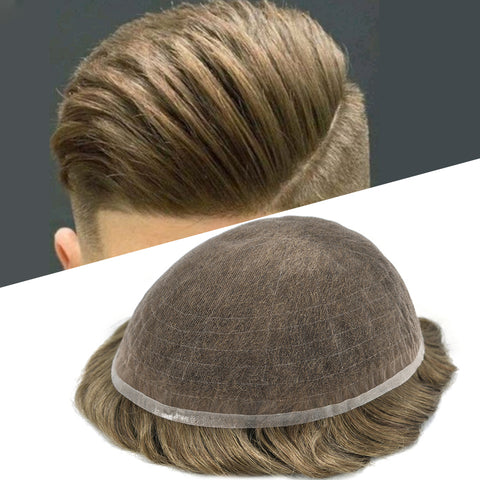 French lace men's toupee, bleached knots show a yellow color that is similar to your own scalp. Hair looks like growing from your own scalp, really undetectable hairline.