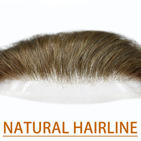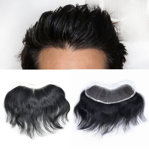 This mens frontal hairpiece is specifically designed for people who have hair loss only at the front hairline, which is also commonly called a receding hairline, and still have healthy hair elsewhere on the head. With this product, people have no need to shave their heads to wear this piece; the only requirement is to bond this piece at the front hairline. It is very important to have a hairstylist blend the frontal hairpiece hair with people's existing hair. This will lead to a much more natural and professional looking result.